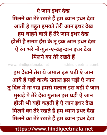 Lyrics of Ai Jan Idhar Dekh - ऐ जान इधर देख