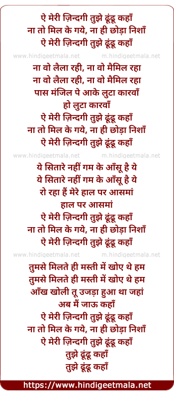 Lyrics of Ai Meri Jindgi Tujhe Dhundhu Kaha (Male Version) - ऐ मेरी ज़िन्दगी तुझे ढूंढू कहाँ