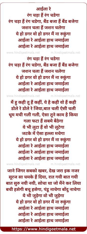 Lyrics of Aila Re Aila (Remix) - आईला रे