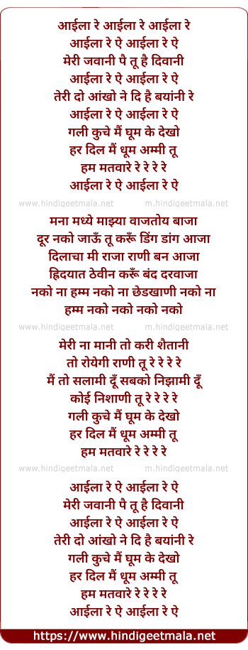 Lyrics of Ailaa Re - आइला रे