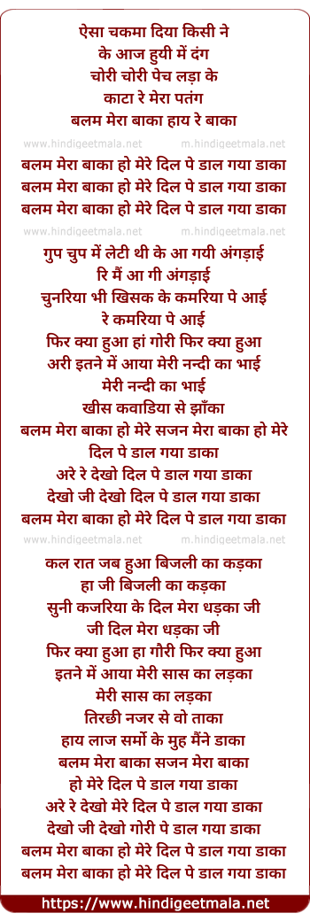 balam mera baaka ho mere dil pe daal gaya daaka