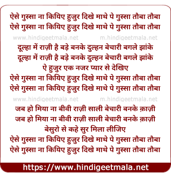 Lyrics of Aise Gussa Naa Kijiye Huzoor - ऐसे गुस्सा ना किजिये हुजुर