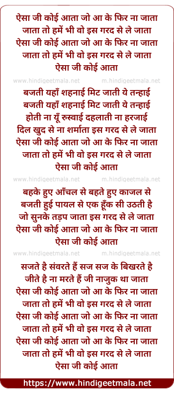 Lyrics of Aisa Ji Koi Aata - ऐसा जी कोई आता