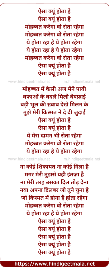 Lyrics of Aisa Kyun Hota Hai (Title Song) - ऐसा क्यूं होता है