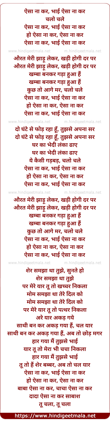 Lyrics of Aisa Na Kar Bhai Aisa Na Kar - ऐसा ना कर, भाई ऐसा ना कर