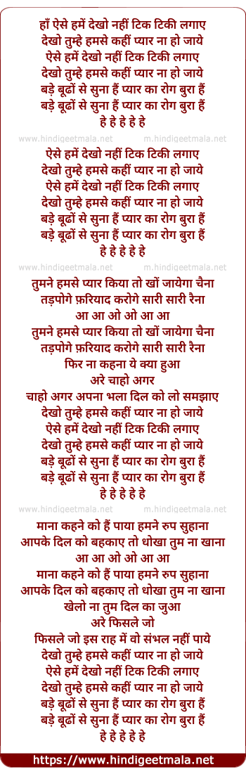 Lyrics of Aise Humein Dekho Nahi (Female) - हाँ ऐसे हमें देखो नहीं टिक टिकी लगाए