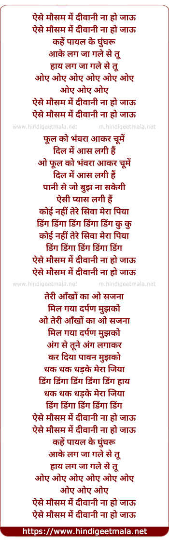 Lyrics of Aise Mausam Me Deewani - ऐसे मौसम में दीवानी