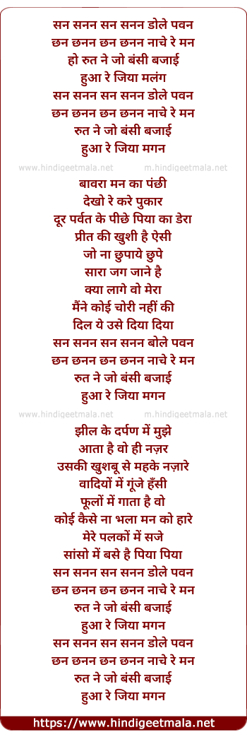 Lyrics of Aisi Laagi Lagan Piya Se - सन सनन सन सनन डोले पवन