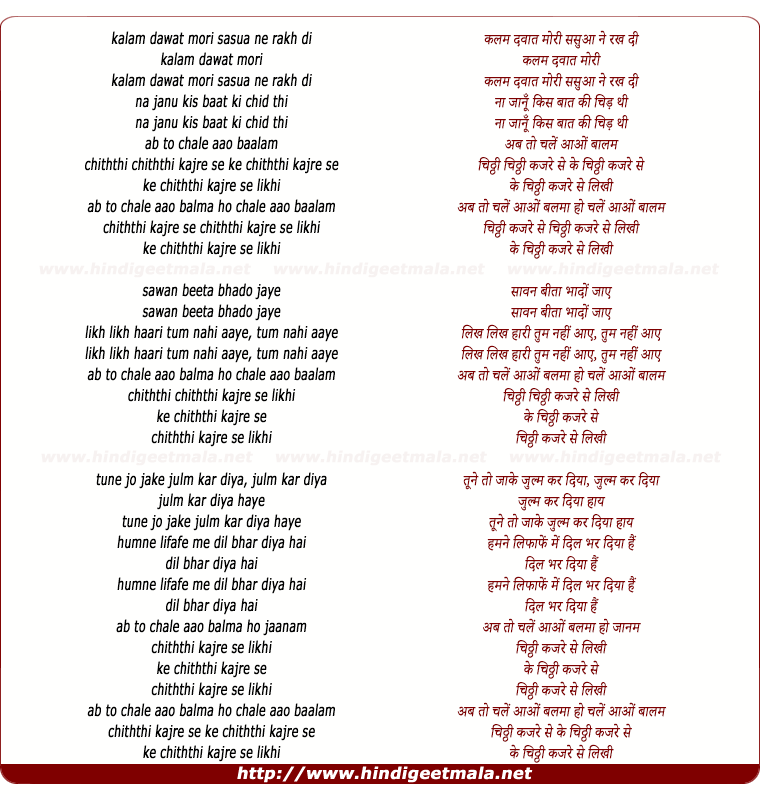 Comments for lyrics of song "Chiththi Kajre Se Likhi"