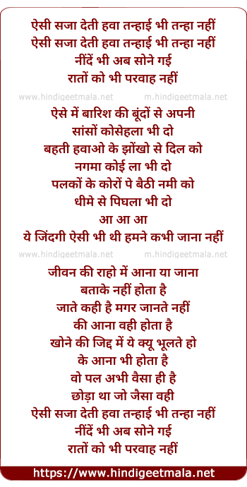 Lyrics of Aisi Saja Deti Hawa - ऐसी सजा देती हवा