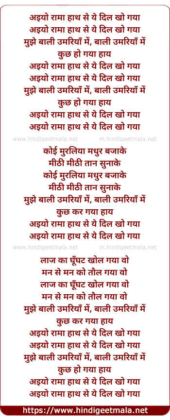 Lyrics of Aiyo Rama - अइयो रामा हाथ से ये दिल खो गया