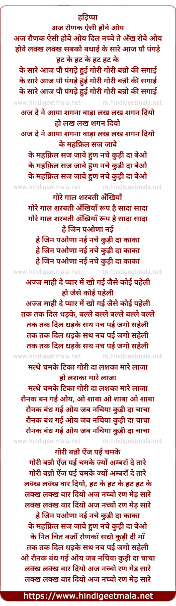 Lyrics of Aj Raunak Aisi Hove Oy, Hui Gori Gori Banno Ki Sagaai - आज रौनक ऐसी होवे ओये, हुई गोरी गोरी बन्नो की सगाई