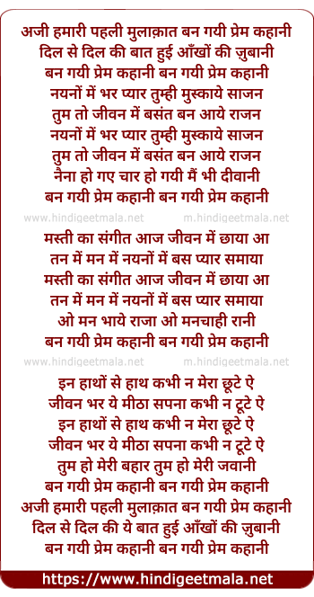 Lyrics of Aji Hamari Pehli Mulaqat Ban Gayi