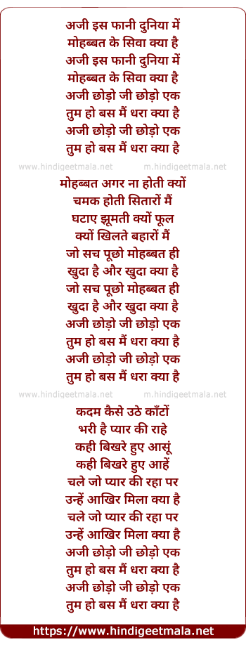Lyrics of Aji Is Faani Duniya Me Mohabbat Ke - अजी इस फानी दुनिया में मोहब्बत के