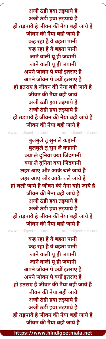 Lyrics of Aji Thandi Hawa Tadpaye Hai - अजी ठंडी हवा तड़पाये है