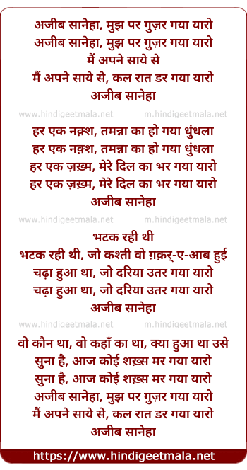 Lyrics of Ajib Saaneha, Mujh Par Guzar Gaya Yaaro - अजीब सानेहा, मुझ पर गुज़र गया यारो