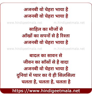 Lyrics of Ajnabi (Ali Haider) - अजनबी वो चेहरा भाया है