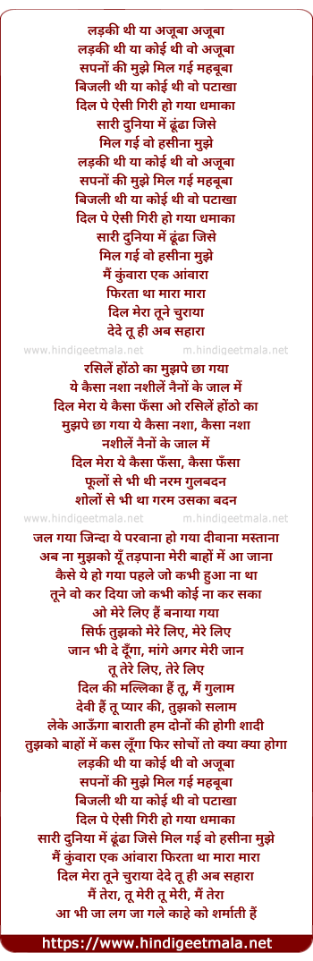 Lyrics of Ajooba - लड़की थी या अजूबा