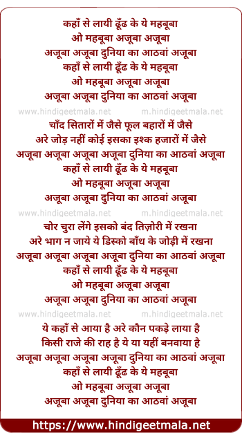 Lyrics of Ajooba Ajooba, Duniya Ka Aathwa Ajooba - अजूबा अजूबा, दुनिया का आठवां अजूबा