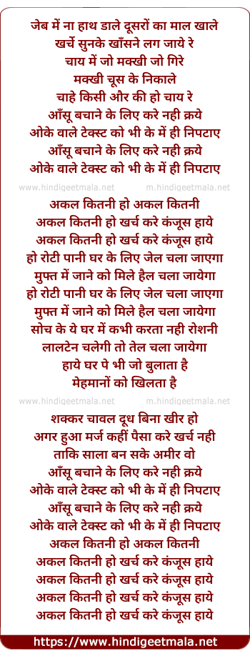 Lyrics of Akal Kitni Ho Kharch Kare Kanjus Haay - अक्ल कितनी हो खर्च करे कंजूस हाय