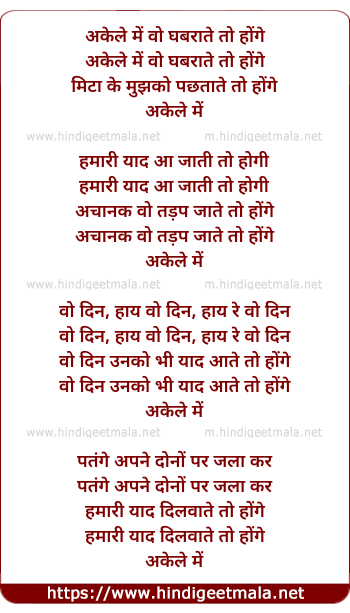 Lyrics of Akele Me Wo Ghabrate To Honge - अकेले में वो घबराते तो होंगे