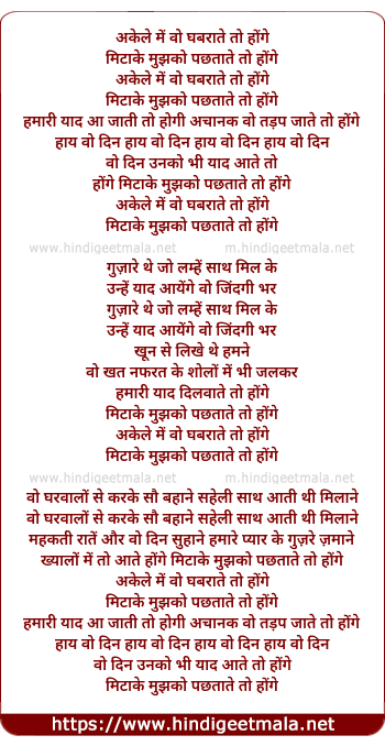 Akele Me Woh Ghabrate Toh Honge - अकेले में वो घबराते तो होंगे