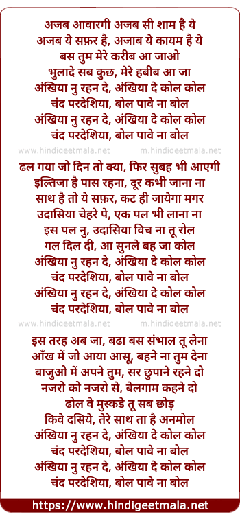 Lyrics of Akhiya Nu Rehn De - अँखिया नु रहन दे