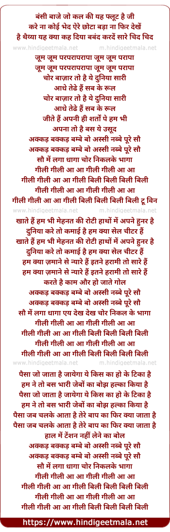 Lyrics of Akkad Bakkad Bambe Boo - अक्कड़ बक्कड़ बम्बे बो