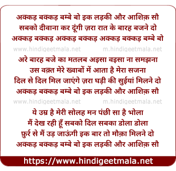Lyrics of Akkad Bakkad Bambe Bo Ik Ladaki Aur Aashiq Sau - अक्कड़ बक्कड़ बम्बे बो इक लड़की और आशिक़ सौ