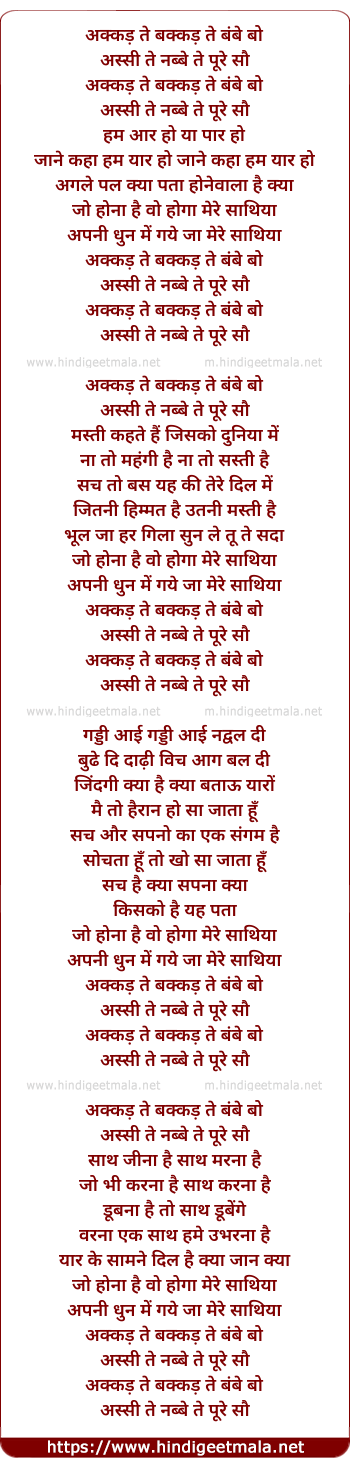 Lyrics of Akkad Te Bakkad Te Bambay Bo - अक्कड़ ते बक्कड़ ते बंबे बो