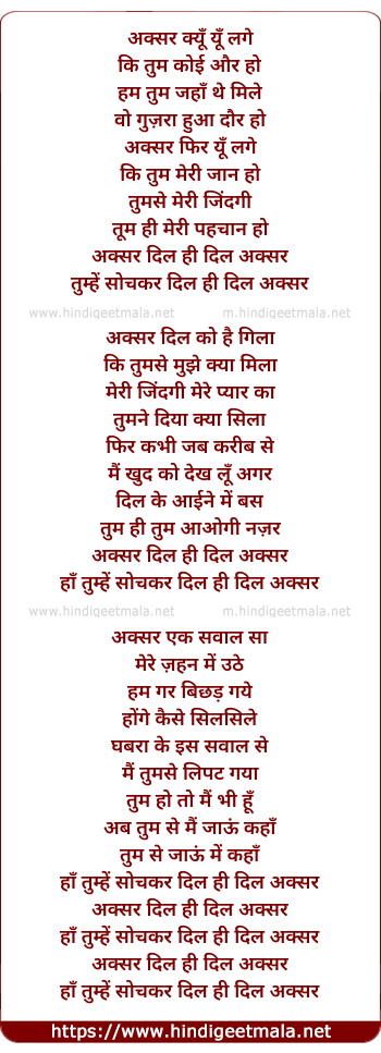 Lyrics of Aksar - अक्सर क्यूँ यूँ लगे