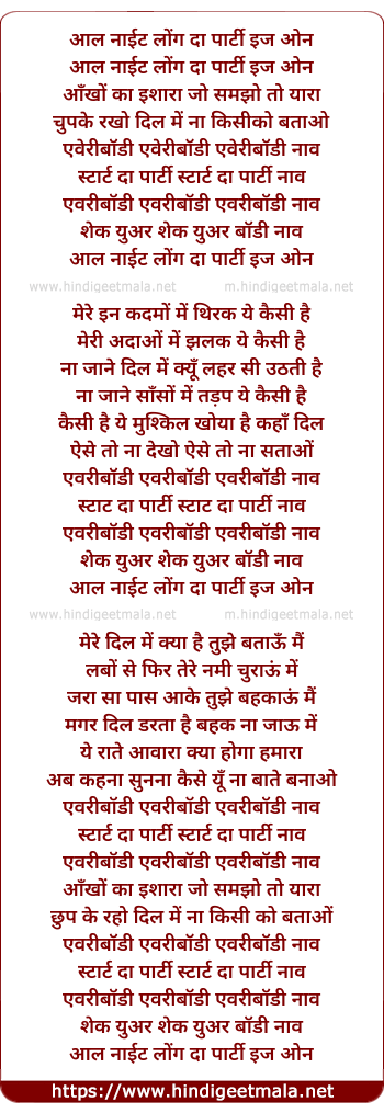 Lyrics of Everybody Everybody Everybody Now Start The Party - एवरीबॉडी एवरीबॉडी एवरीबॉडी नाओ स्टार्ट दा पार्टी