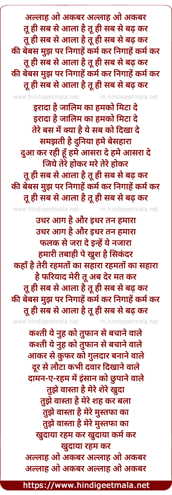 Lyrics of Allaah O Akbar - अल्लाह ओ अकबर