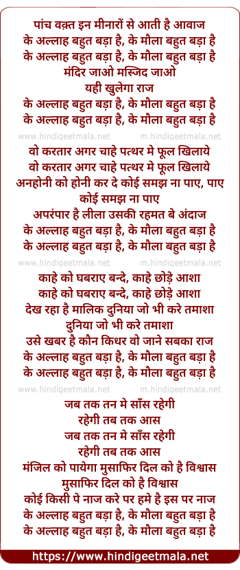 Lyrics of Allah Bahut Bada Hai - अल्लाह बहुत बड़ा है