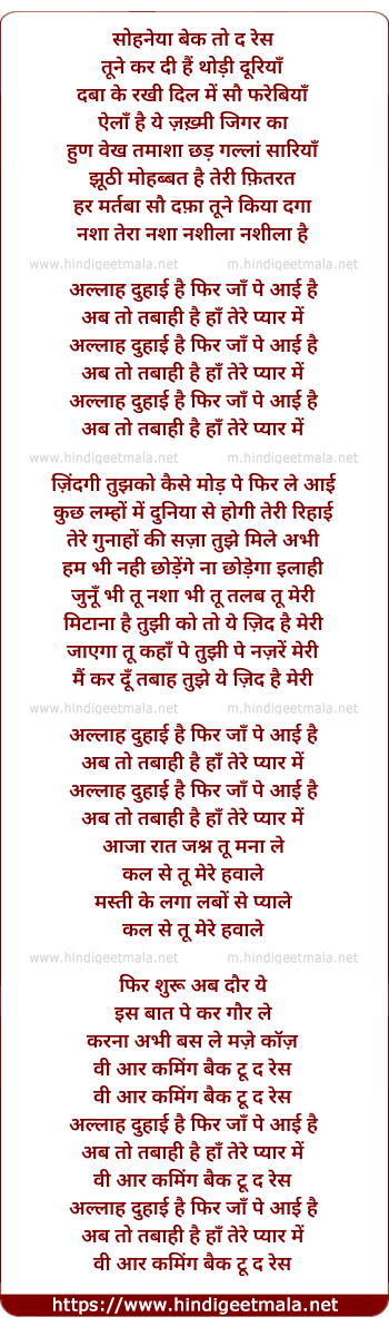 Lyrics of Allah Duhai Hai - अल्लाह दुहाई है