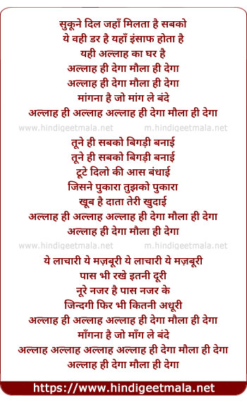 Lyrics of Allah Hi Dega Maula Hi Dega - अल्लाह ही देगा मौला ही देगा