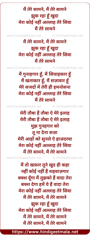 Lyrics of Allah Hoo Allah - मैं तेरे सामने, मैं तेरे सामने