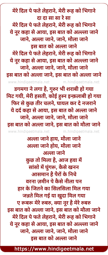 Lyrics of Allah Jaane, Jaane, Maula Jaane - अल्ला जाने, जाने, मौला जाने
