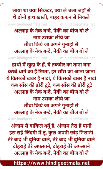 Lyrics of Allah Ke Naik Bande - अल्लाह के नेक बन्दे