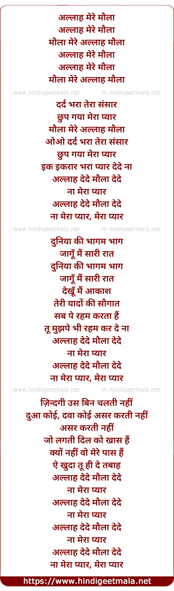Lyrics of Allah Mere Maula - अल्लाह मेरे मौला