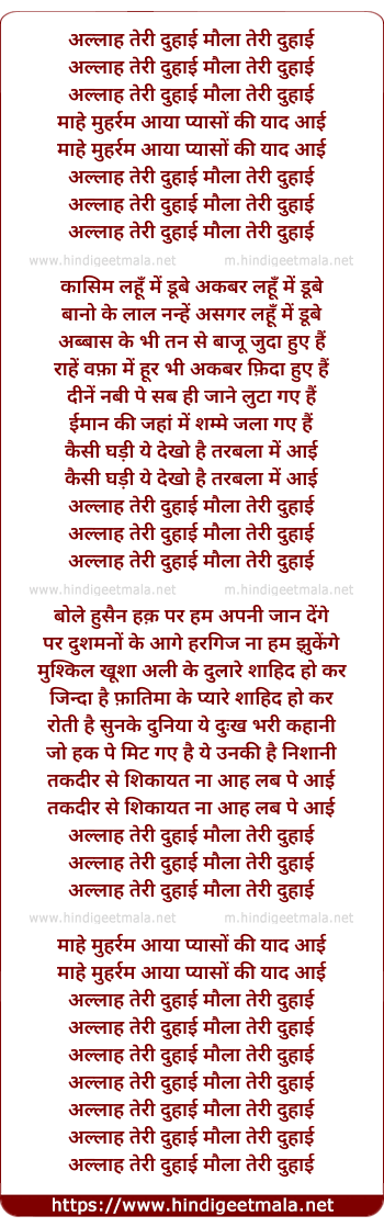 Lyrics of Allah Teri Duhai - अल्लाह तेरी दुहाई