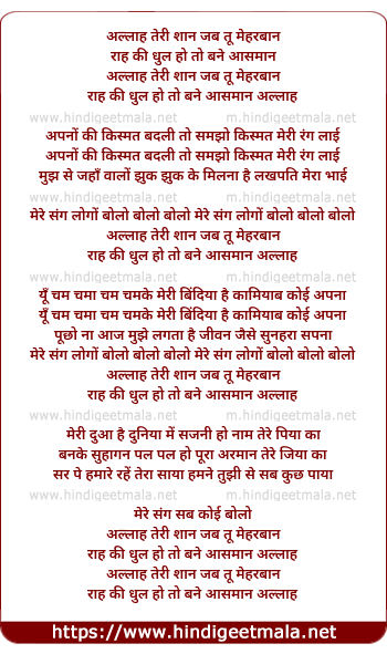 Lyrics of Allah Teri Shaan - अल्लाह तेरी शान