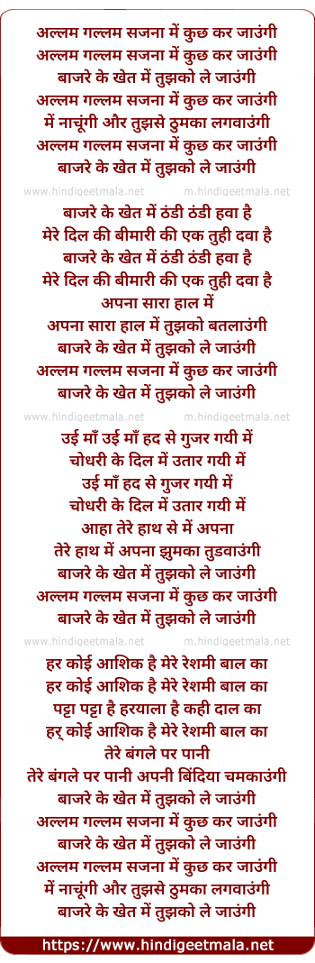 Lyrics of Allam Gallam Sajana - अल्लम गल्लम सजना