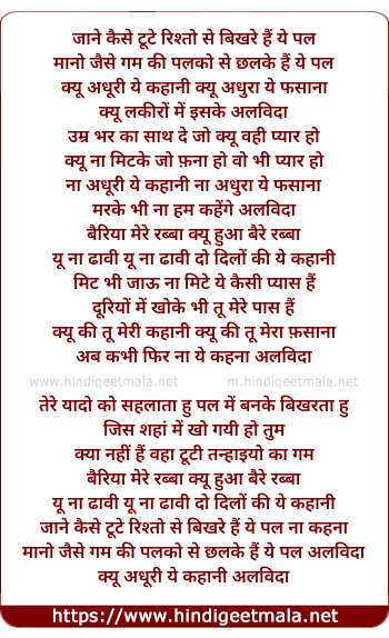 jane kaise tute rishto se bikhre hai ye pal na kehna