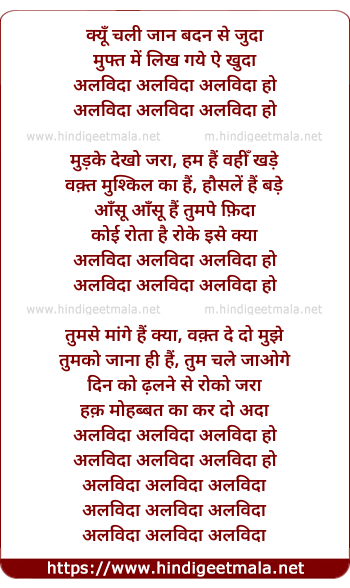 Lyrics of Alvidaa (Shibani Kashyap) - क्यूँ चली जान बदन से जुदा