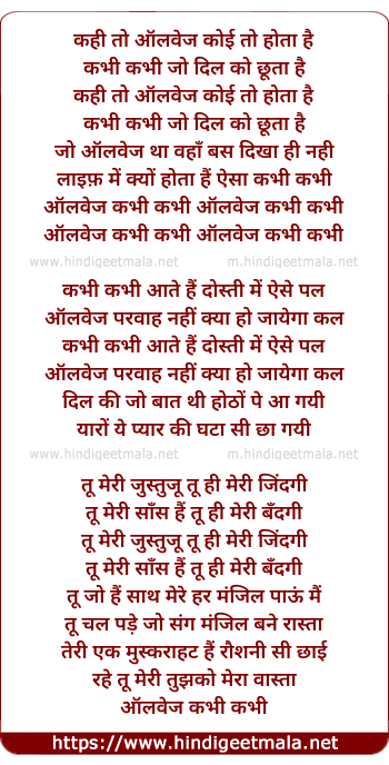 Lyrics of Always Kabhi Kabhi - कही तो ऑलवेज कोई तो होता है