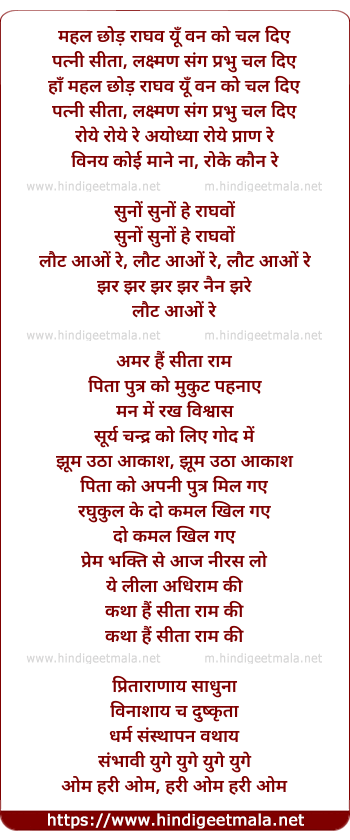 Lyrics of Amar Hai Sita Ram - अमर हैं सीता राम