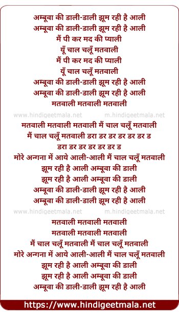 Lyrics of Ambuva Ki Dali Dali Jhum Rahi Hai Aali - अम्बूवा की डाली-डाली झूम रही है आली