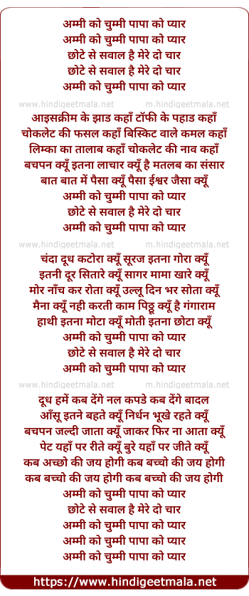 Lyrics of Ammi Ko Chummi Papa Ko Pyaar - अम्मी को चुम्मी पापा को प्यार