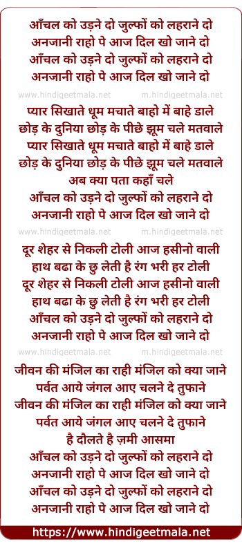 Lyrics of Anchal Ko Udne Do, Julaf Ko Lahrane Do - आँचल को उड़ने दो, जुल्फों को लहराने दो